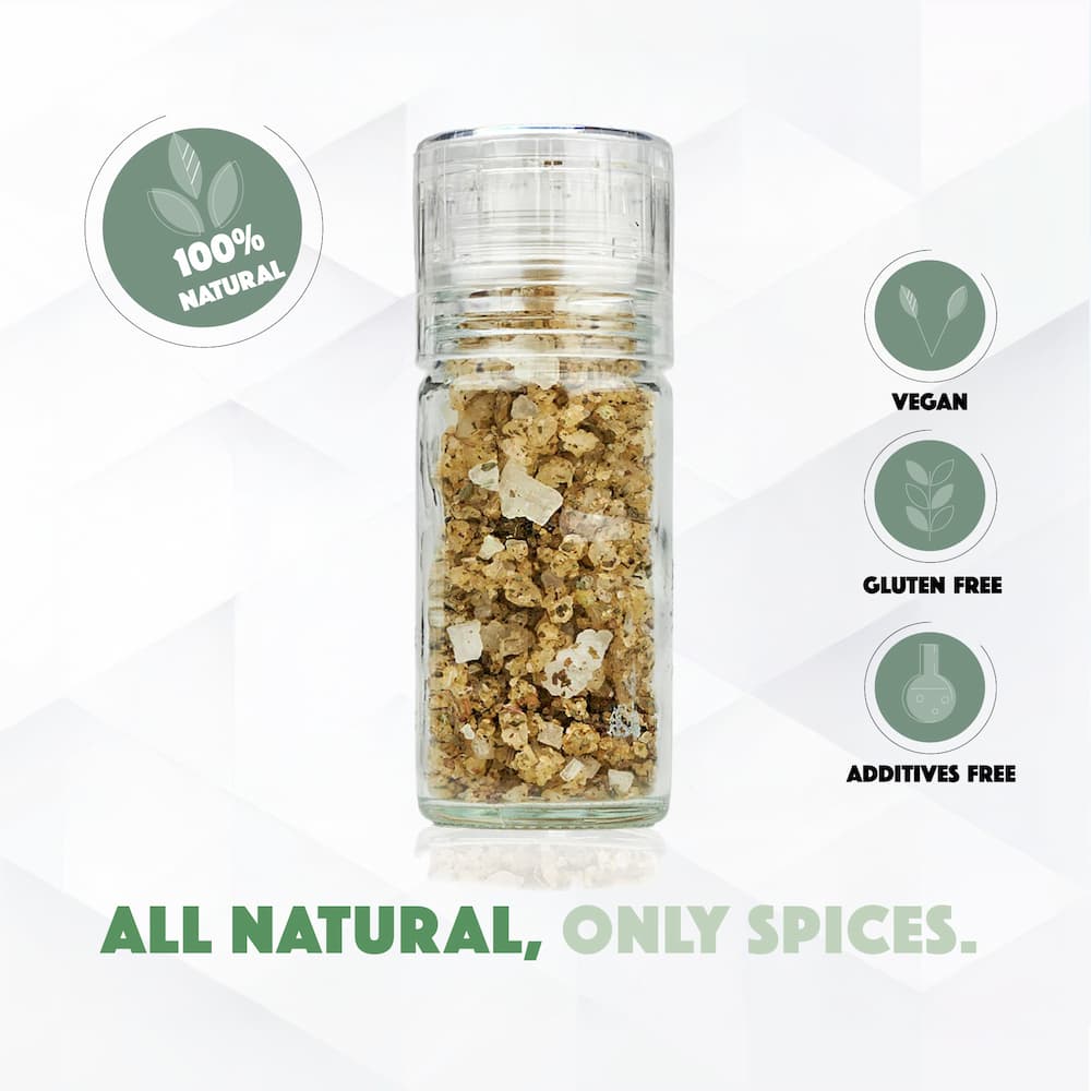 Use: Seasons meat, fish, chicken, pasta, vegetables and salads