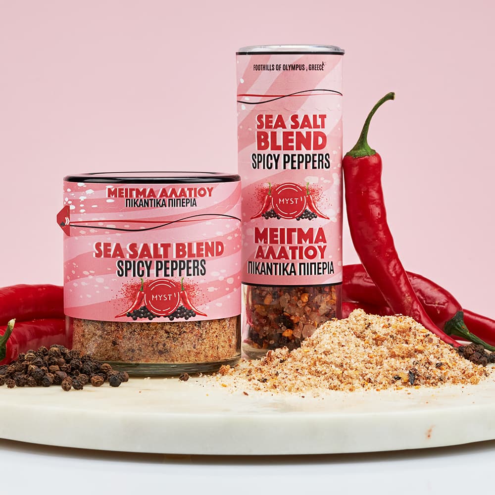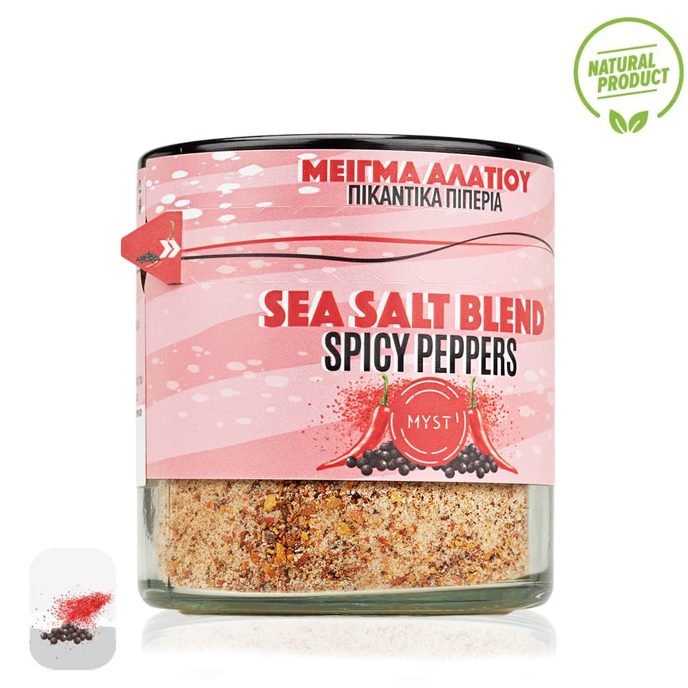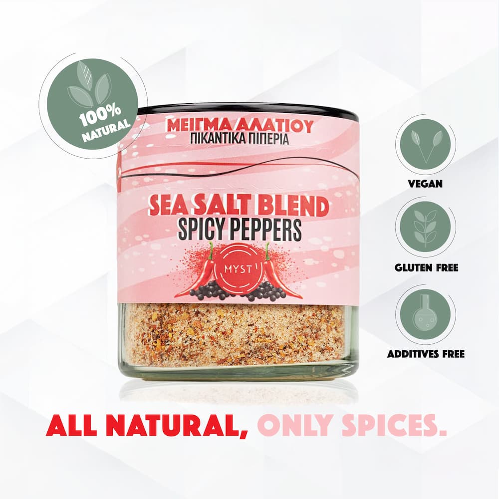 Ingredients:Pure sea salt from foothills of Olympus, dried natural spicy florinis pepper , boukovo and black pepper
